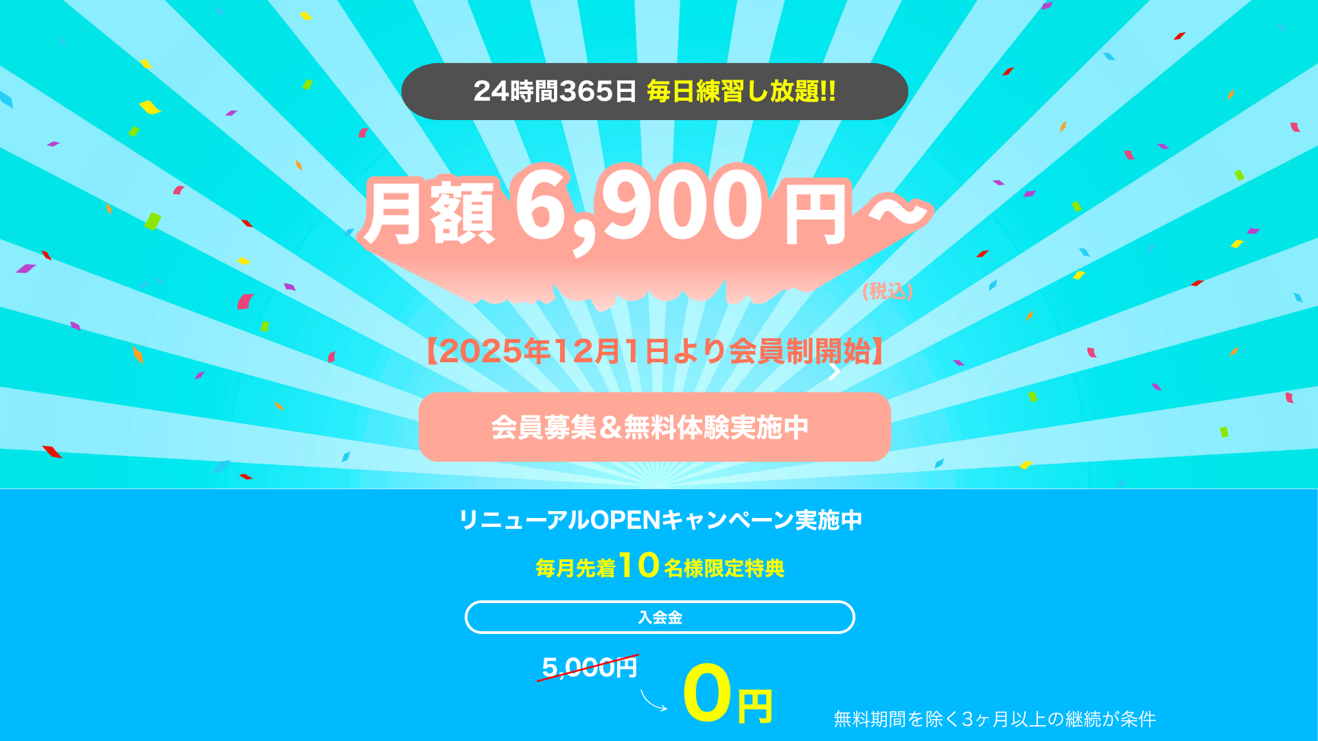 毎月の練習回数を気にすることなく、毎日最大115分練習に打ち込んでいただけます。